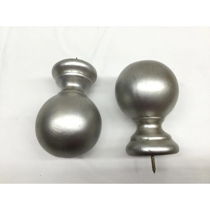 2x Wooden Drapery Curtain Rod Finials Fits 1 3/8” Rod - Screw On - Silver.