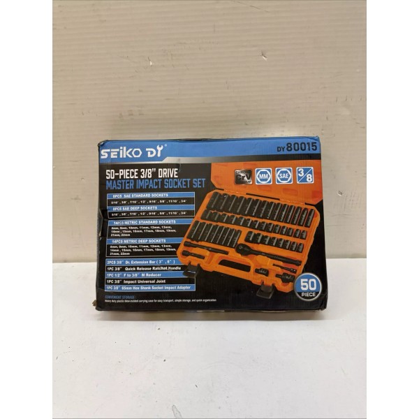 Unbranded 3/8" Drive Impact Socket Set 50-Piece Standard SAE and Metric 6 Point Cr-V New