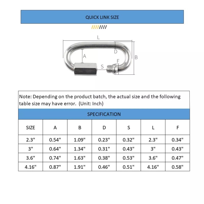 MULTI-APPLICATIONS: The heyous Quick Link is designed to create permanent or temporary secure connections. The quick chain connector here is widely used in marine, fittings, and water treatment fields. It's also perfect for outdoor activities.