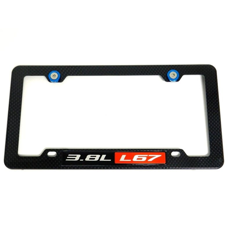 Unbranded 3.8L L67 CARBON FIBER LOOK LICENSE PLATE FRAME W/ 4 BLUE WASHERS & BOLTS