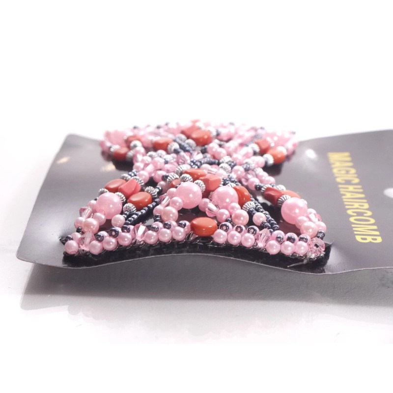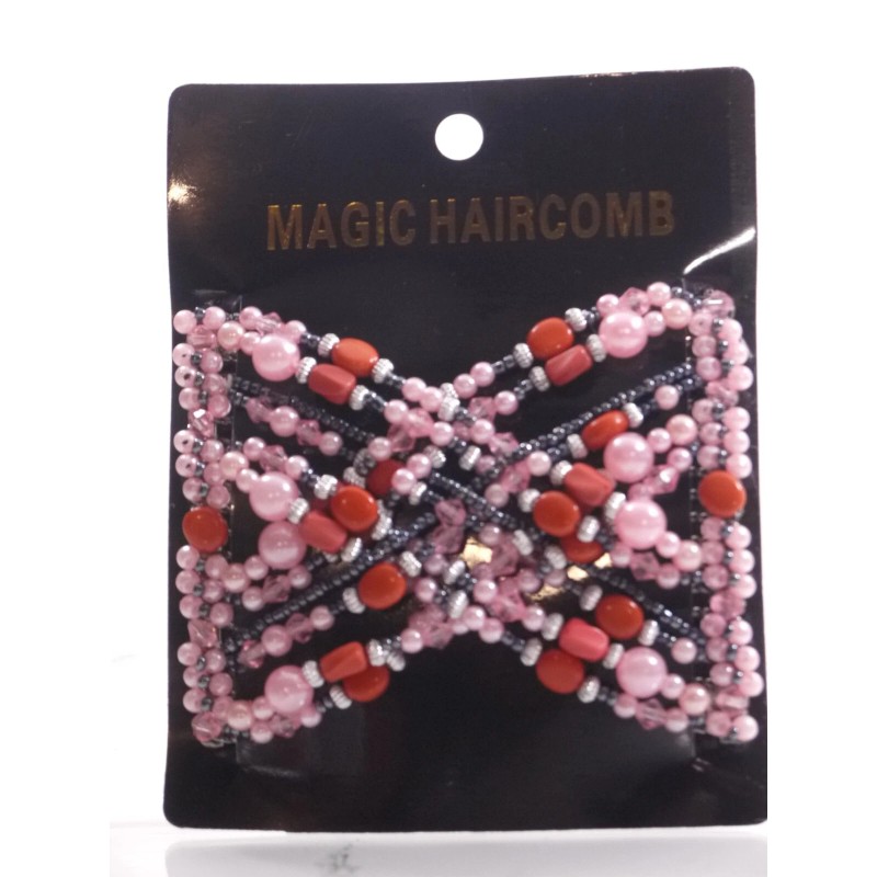 Unbranded 3 Double Hair Comb Magic Beads Elasticity Clip Stretchy Hair Combs Clips PINK