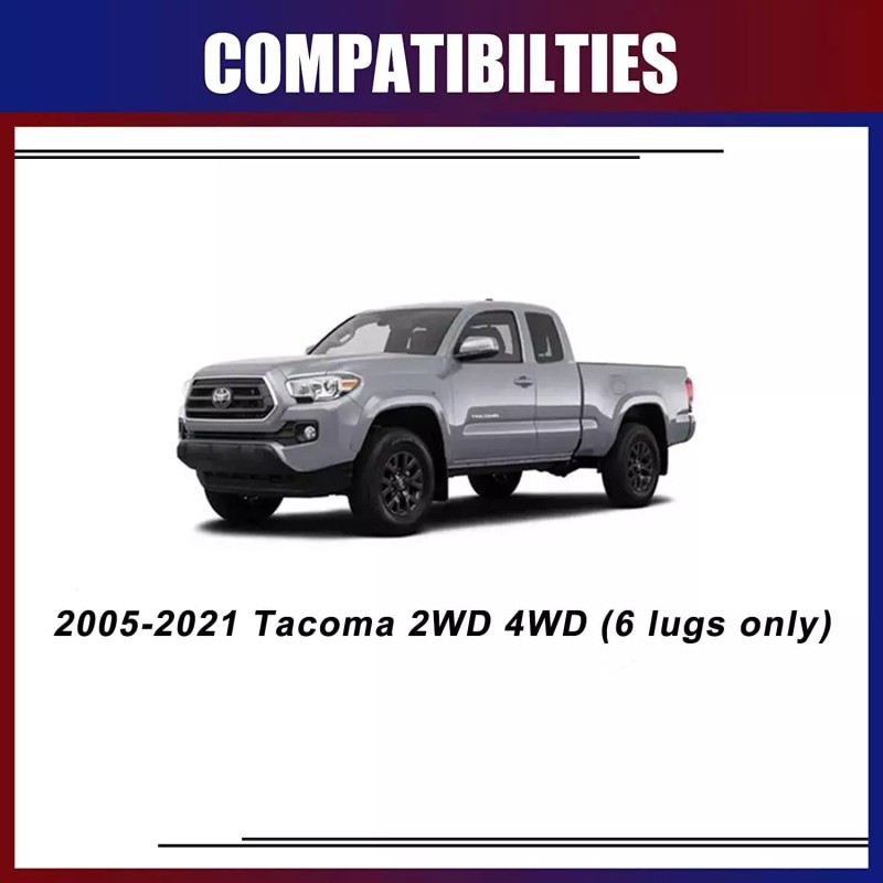 - Does not fit 5-Lug Tacoma models