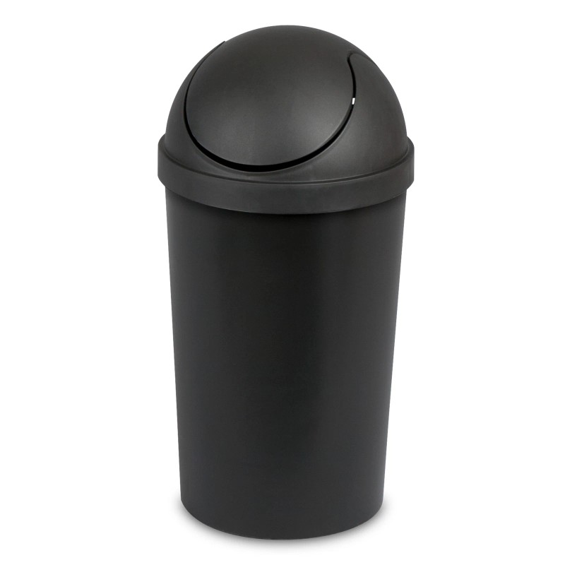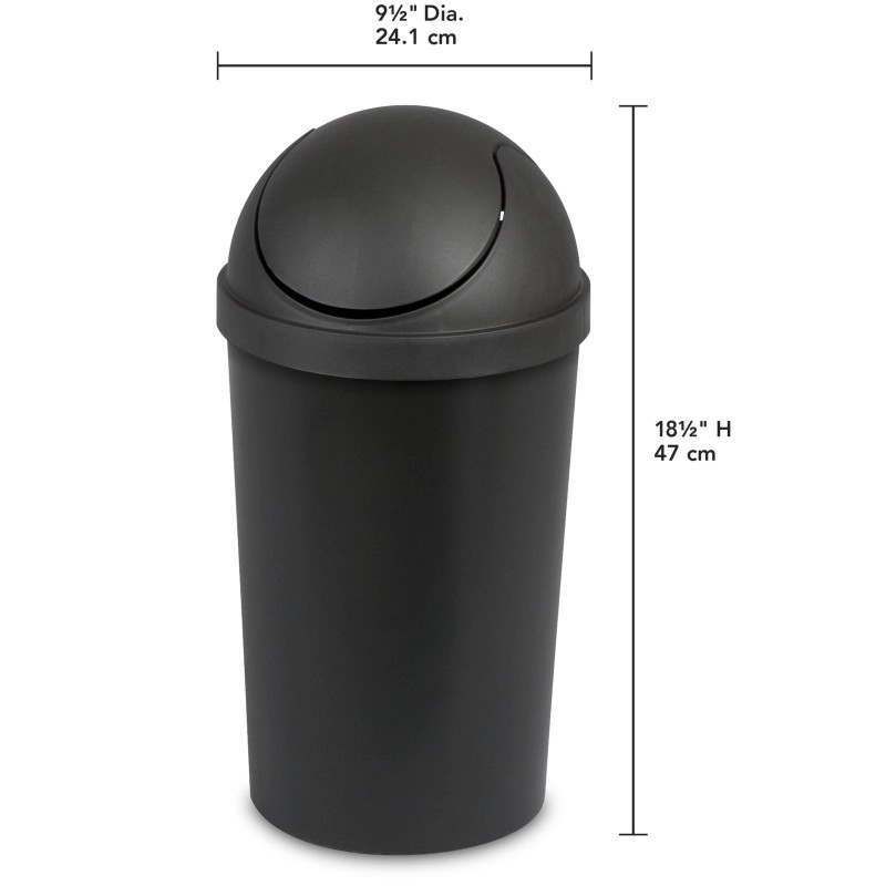 The 3 Gallon Round Swing Top Wastebasket is ideal for smaller spaces and is great for use in the home or kitchen. It features a round shape and domed-lid design that swings open and closed when pushed, for both large and small items. When the Swing Top wastebasket is closed, items are then concealed making for a more clean and organized look to wherever it is placed in the home. The combination of the polished and textured sides are easy to clean and will add a fashionable element to any home decor. The wastebasket is ideal for use in the bathroom or office and conveniently accommodates a standard plastic shopping bag or 4-gallon trash liner.