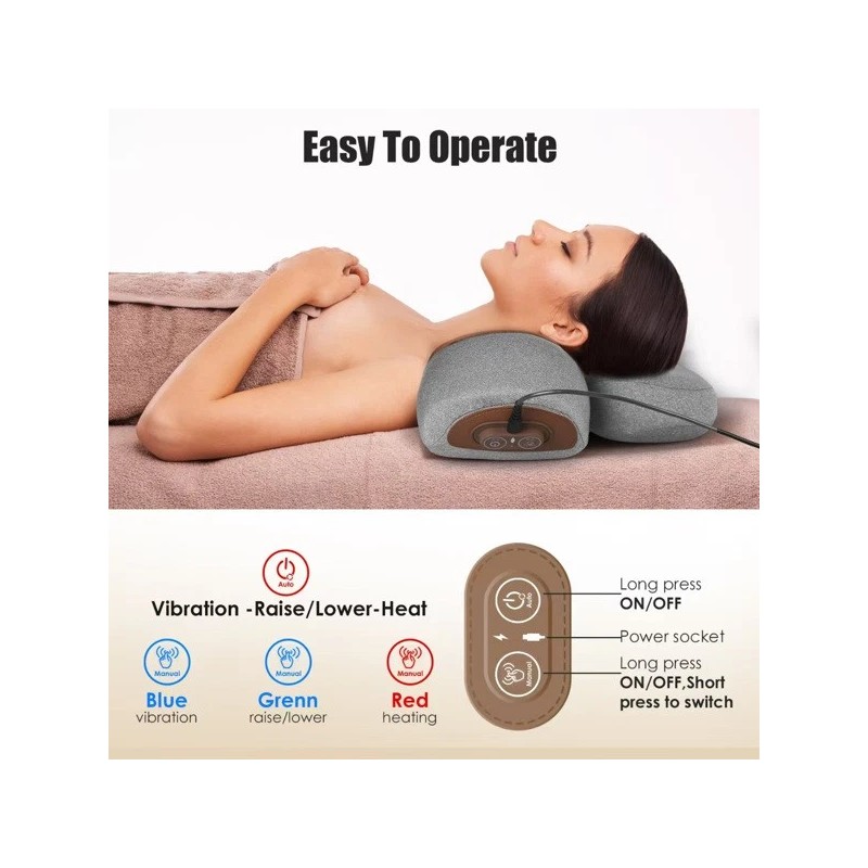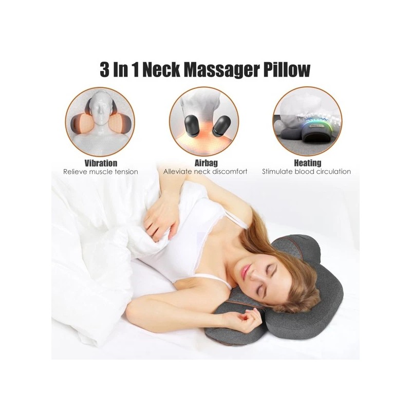 • 3-In-1 Neck Massager Pillow: Innovative 3-in-1 multifunctional neck massager pillow combines vibration, airbag-supported and heating functions into one device, beneficial to overall neck health improvement. Vibration function helps to relieve muscle tension, airbag system provides gentle yet effective pressure to alleviate discomfort caused by poor posture or prolonged sitting, and heating therapy stimulate blood circulation.