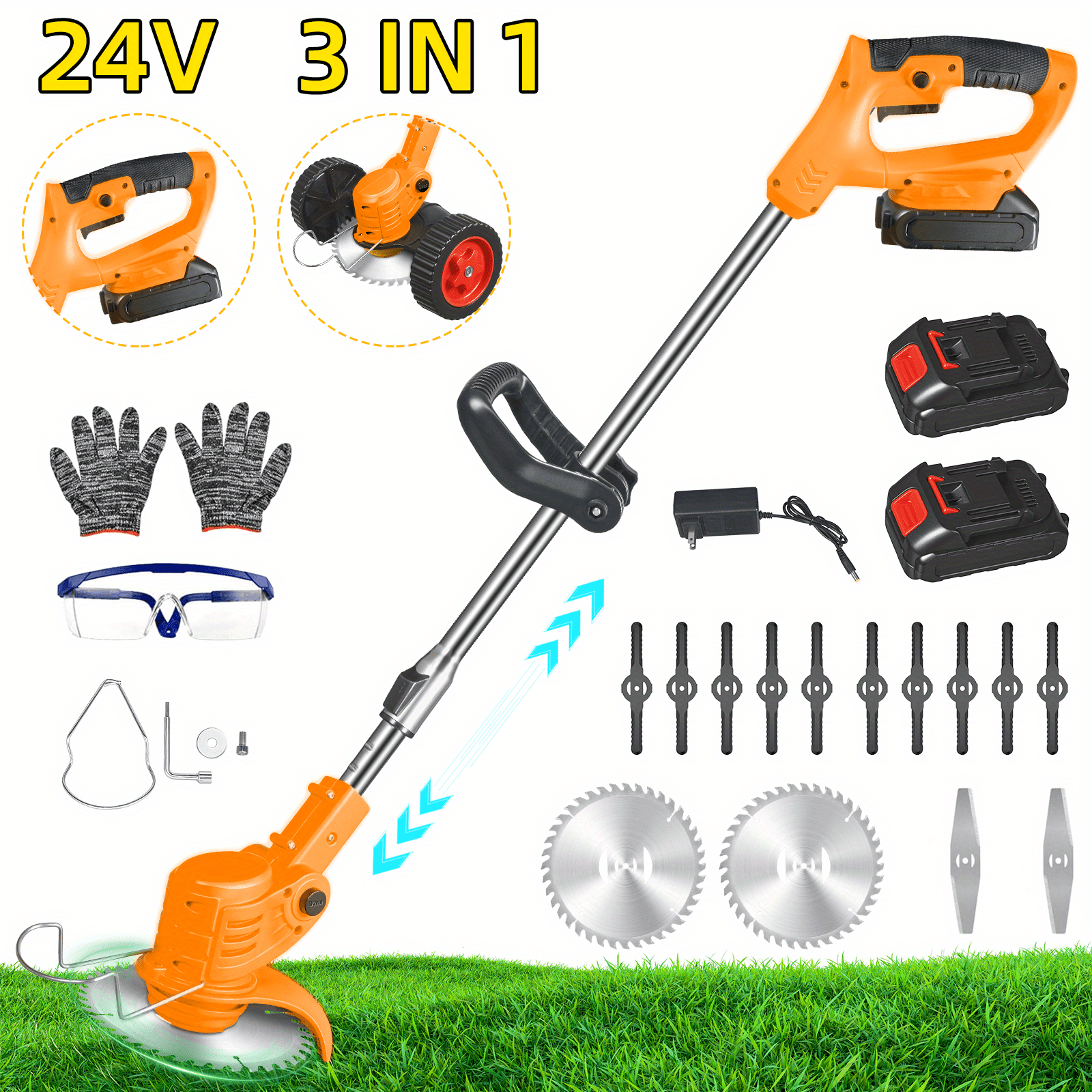 Unbranded 3-in-1 Rechargeable Lawn Mower & Weeder with 2 Batteries