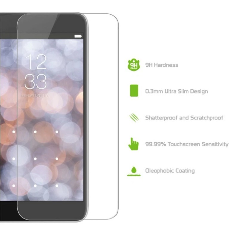 • Anti-Shatter Film: If broken, the protector breaks into small pieces that are not sharp, making it safer than other glass products.