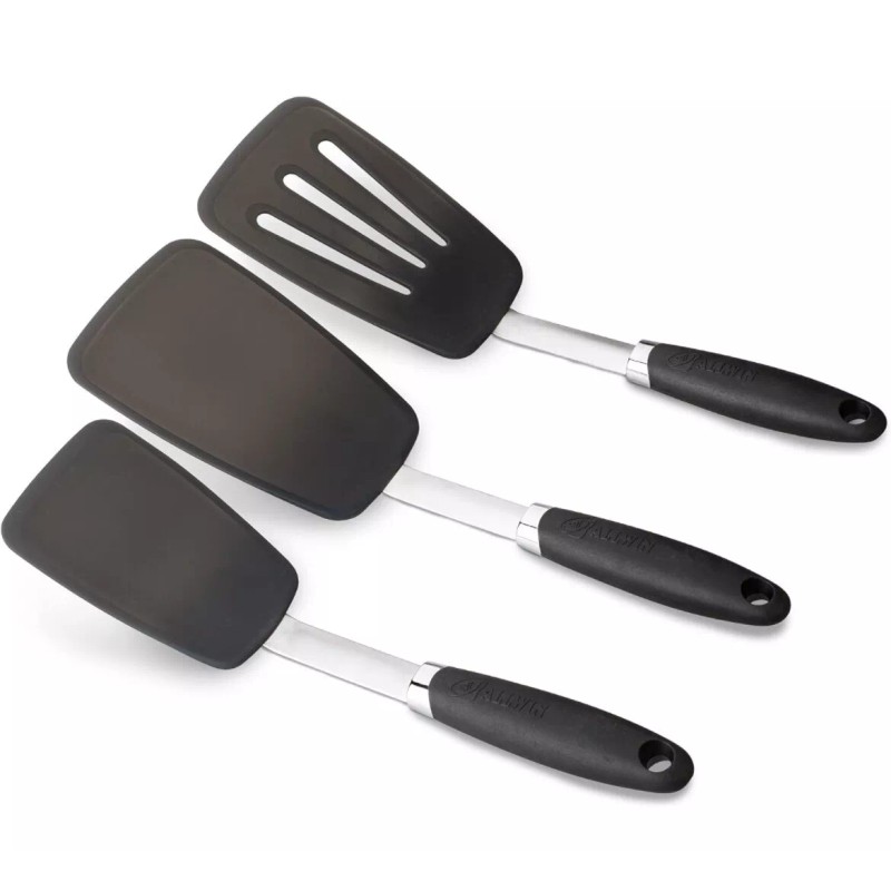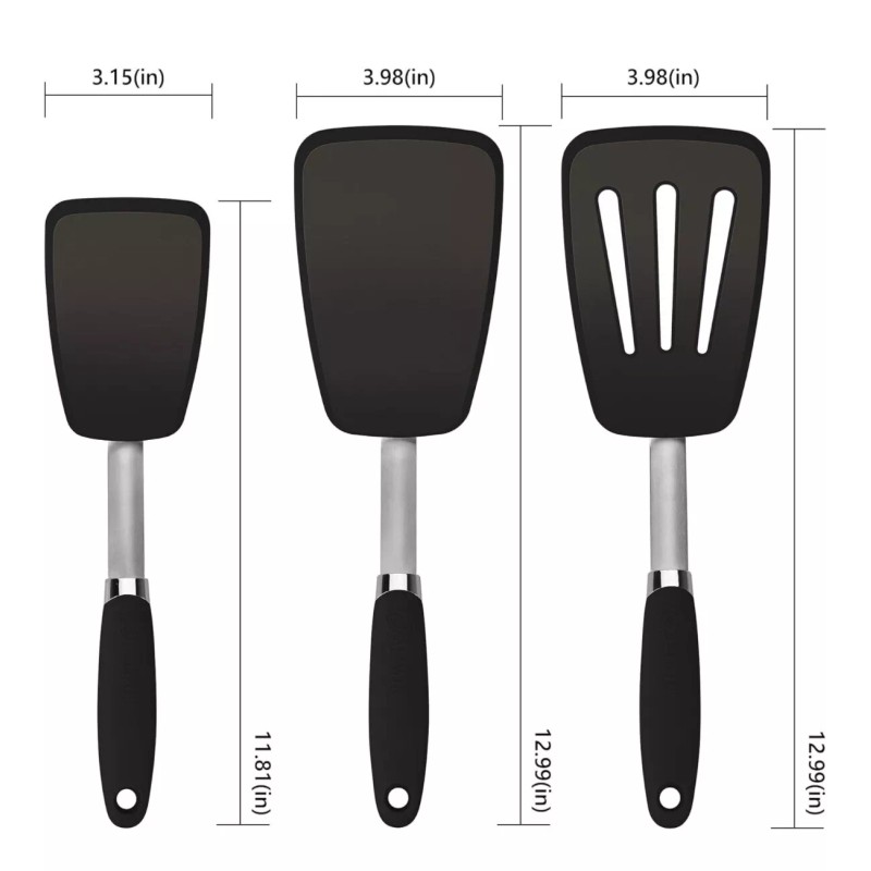 Unbranded 3 pack Hygienic Solid Heat-Resistant Flexible Silicone Spatula, Black Turner