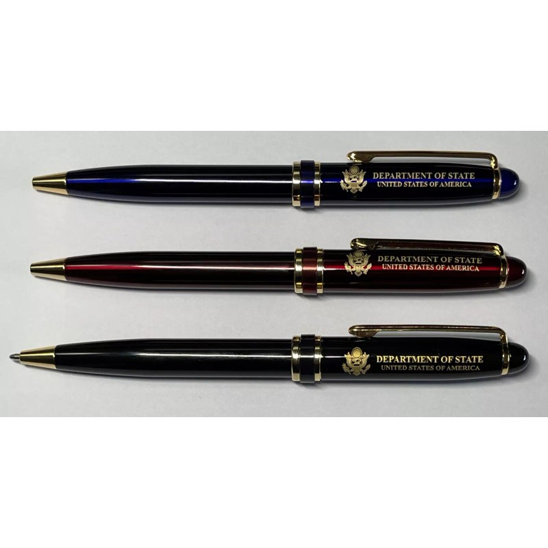 Unbranded 3 PIECES DEPARTMENT OF STATE METAL BALLPOINT PEN WITH BLACK POUCH (BP-6020)