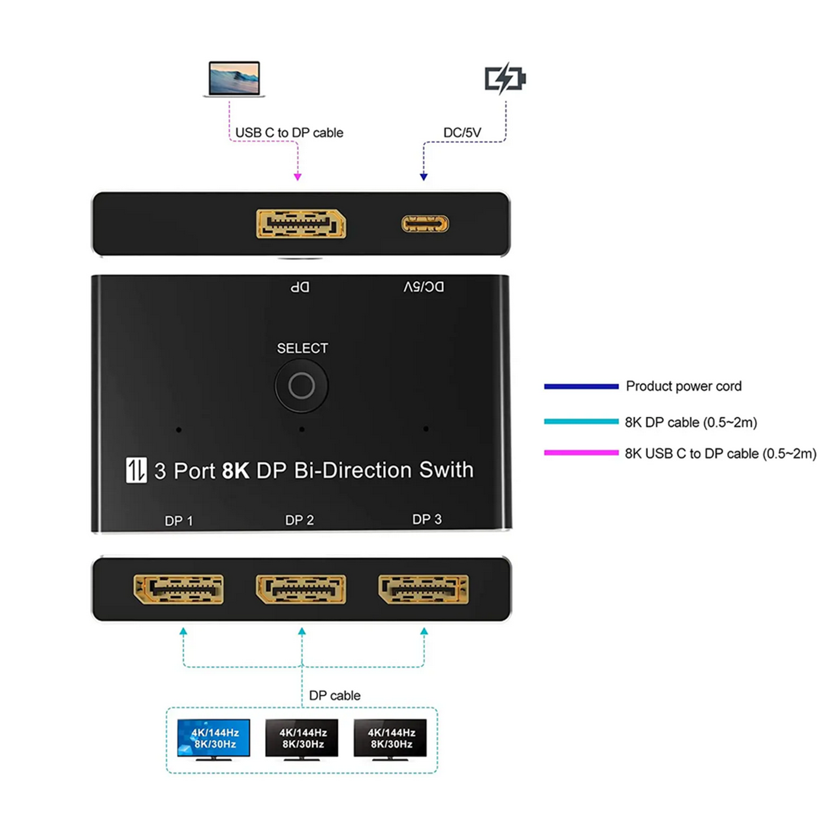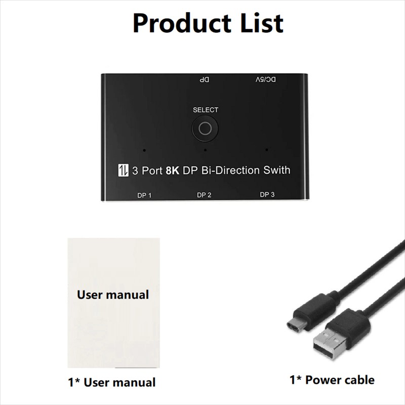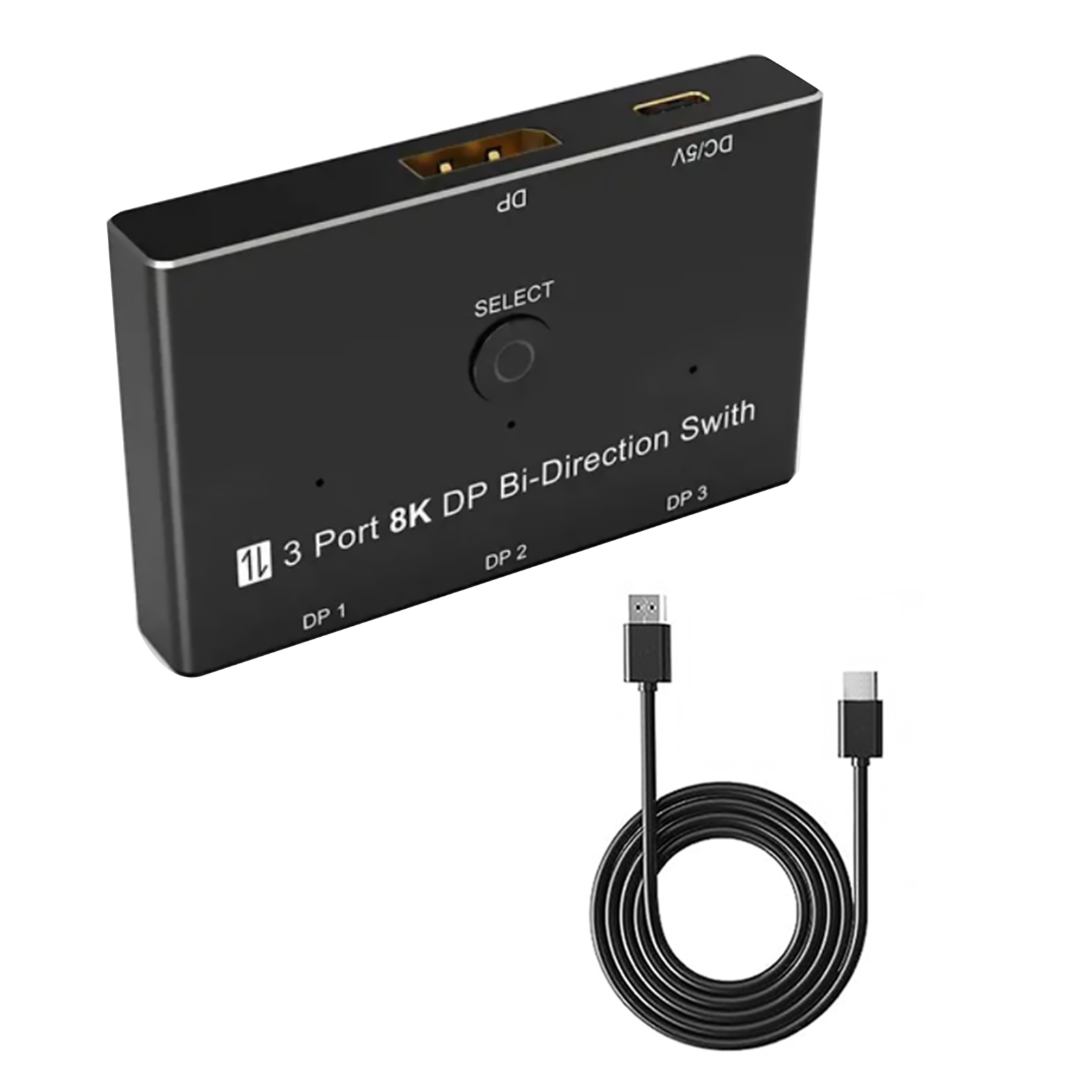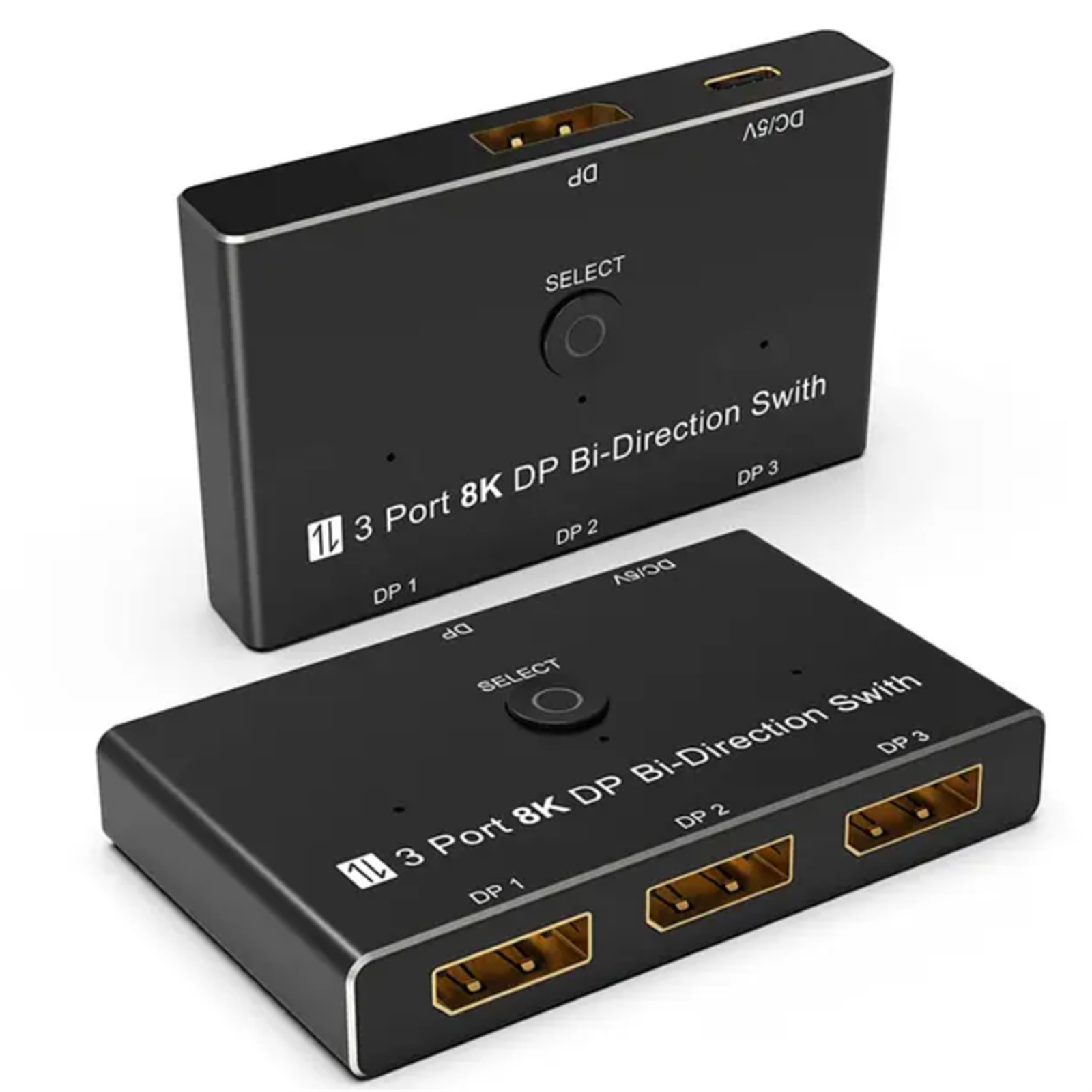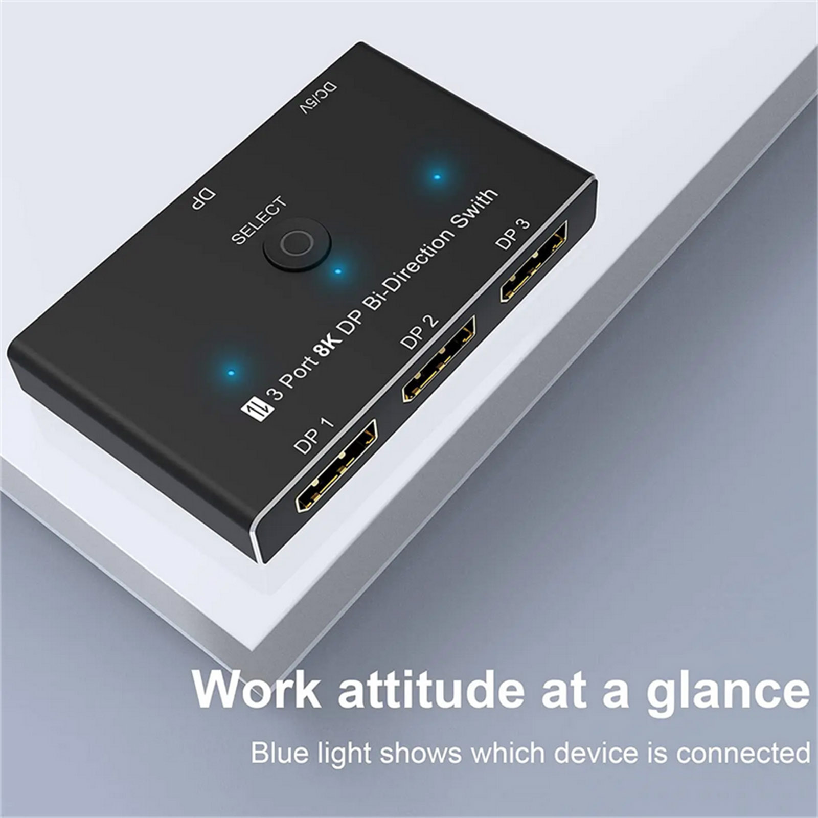 Unbranded 3 Port 8K DisplayPort Switch Splitter 1x3 Bi-Direction DP Switcher Converter