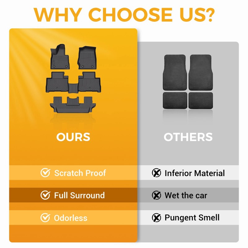4. High Quality: Rubber Floor Liners made by High-tech 3D digital laser scanning to protect the front and back of your car footwell, which are not easy to wear, fade, waterproof and antifouling, can effectively protect the vehicle floor and extend the service life of the vehicle.