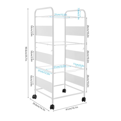 This 3-tier rolling file cart is great for the office and study. The 360° rotatable and braked cart is easy to move to where you want to go. The steel material and welding process create a sturdy structure for the cart. The generous size gives you enough space to organize your files and keep your office study environment tidy. An elegant appearance suits most decoration styles, so you can buy it with confidence.