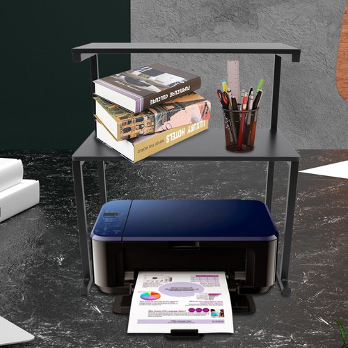 Application It Is Suitable for Living Room, Bedroom, Bathroom, Kitchen Storage Room, Farmhouse, Garage, Office, Laundry, Etc. to Hold Printers, Files, Books, Greenery, and Other Sundries.   Specification Color: Black Material: Iron, Density Board Feetpads Material: Rubber Shape: Rectangular Number of Layers: 3 Mounting Type: Tabletop Compatible Devices: Printers Process: High-temperature Baking Recommended Uses for Product: Office Style: Industrial Style Net Weight: 4.3kg/9.4lbs Gross Weight: 4.5kg/9.9lbs Product Size: 52.5*36*63.2cm/20.67*14.17*24.88inch Package Size: 64*40*11cm/25*15*4inch Load-bearing Capacity: 10kg/22lbs Package Included 2* Density Boards 2* Frames 1* Square Tube Other Accessories for Assembly