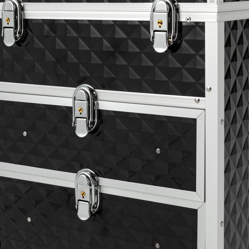 Beautiful Appearance: The glossy black finish with anti-scratch diamond patterns makes your makeup case more elegant and stylish, adding a touch of decor to your workplace.