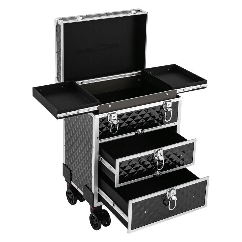 Unbranded 3-Tiers Professional Rolling Makeup Case Cosmetic Organizer w/ liding Drawers