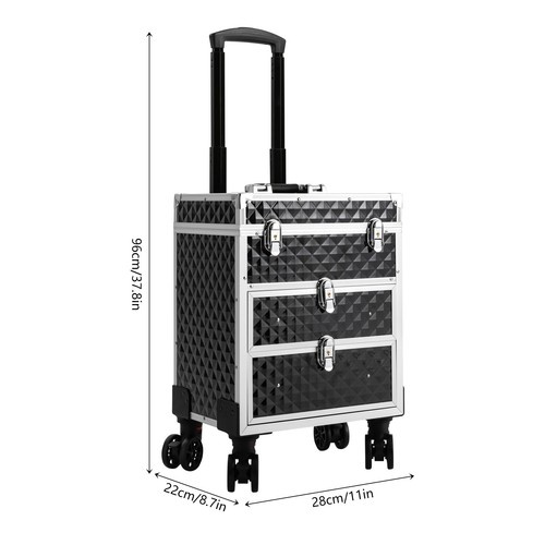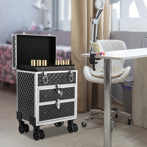 Unbranded 3-Tiers Rolling Makeup Case Professional Cosmetic Organizer w/ liding Drawers