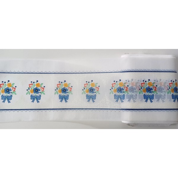 Unbranded 3 Yds. White Floral Bouquet/Bow 7" Unfinished Edged Fabric Trim ES-372