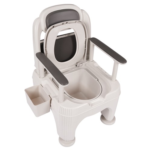 User-friendly: the Inner Bucket with a Handle Makes It Easy for You to Change It Quickly, the Tissue Box on the Side Allows for Easy Access to Paper Towels, and the Removable Support Armrests Provide Support for Elderly People When They Sit and Stand up, After Removing the Armrest, You Can Lean the Toilet Against the Bed for Convenient Use.