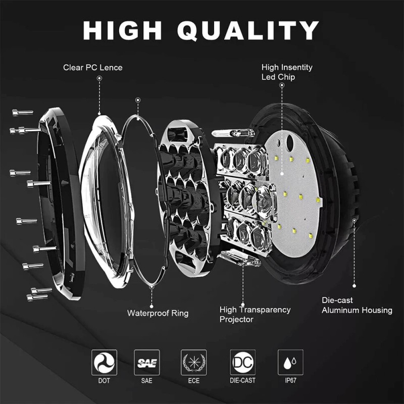 - OE/OEM Part Number: Pair 7 inch Round LED Headlight