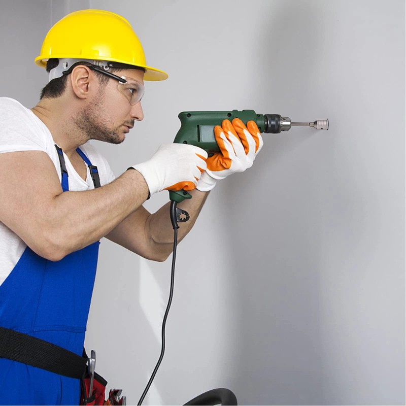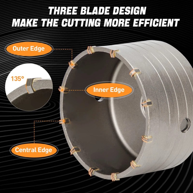 5. Tungsten Steel and Cemented Carbide: This kit is made of durable tungsten steel and cemented carbide, strong enough to drill through hard stone and concrete. Each hole saw bit is equipped with an air vent, which can freely remove dust from the drilling process, effectively improving the drilling efficiency.