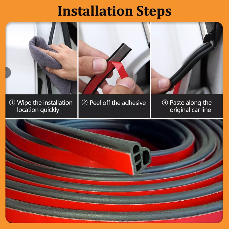 Easy to Install: This car weather stripping is easy to install, no glue required. Just peel off the surface of the adhesive backing and stick it along the position you need to seal, you can cut it freely. The adhesive backing is non-marking and the adhesive structure is solid, tearing off without leaving traces and does not hurt the car paint.