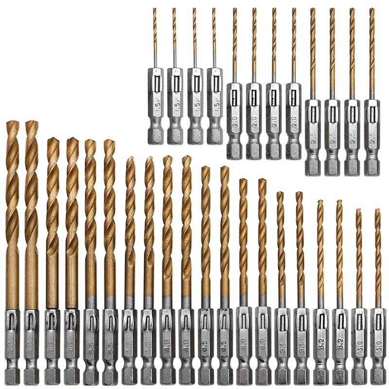Unbranded 32Pcs Drill Bit Set 2.44"-4.69" HSS Titanium Multi Drill Bits Twist Metal Tools