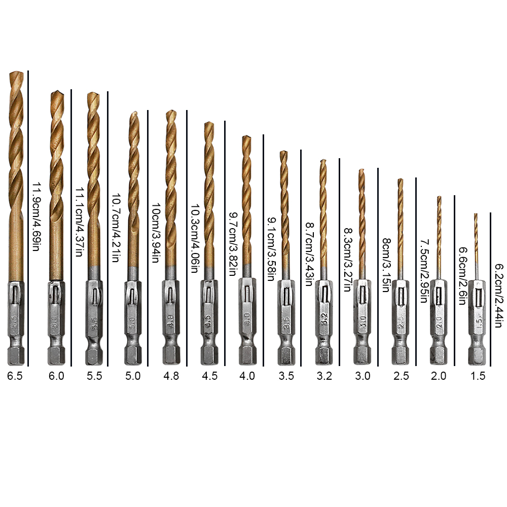 Unbranded 32Pcs Drill Bit Set 2.44"-4.69" HSS Titanium Multi Drill Bits Twist Metal Tools