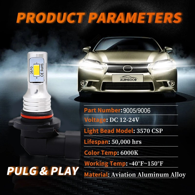 *LED lamp bead is made by double-sided ceramic process. Independent heat dissipation designed. Durable and fading, the lamp bead is small. The concentrating performance is improved by 80%, and the self-contained reflector has been better than before, consisting with the luminous point of the original car halogen bulb, it is stable and long-lasting.
