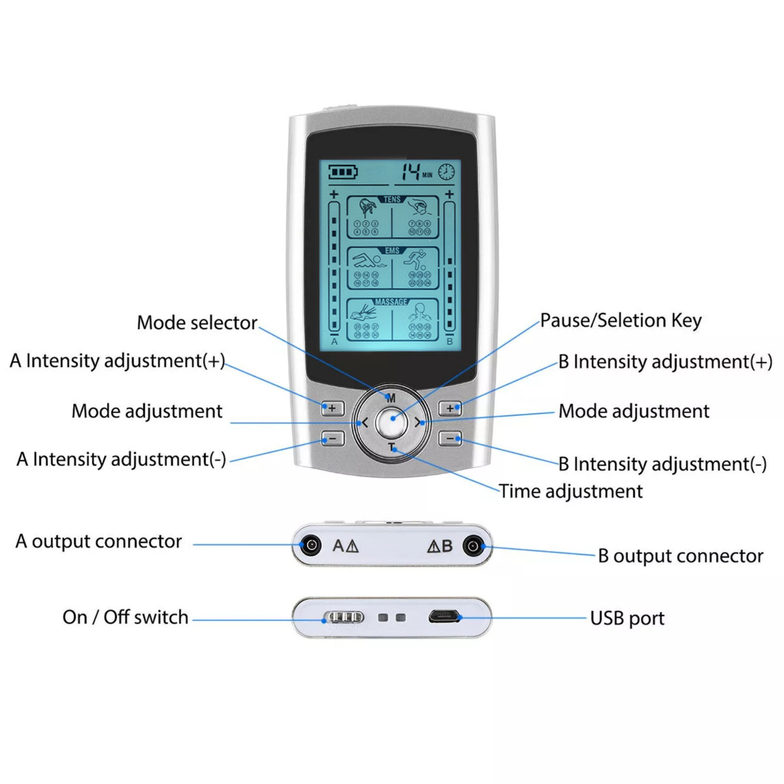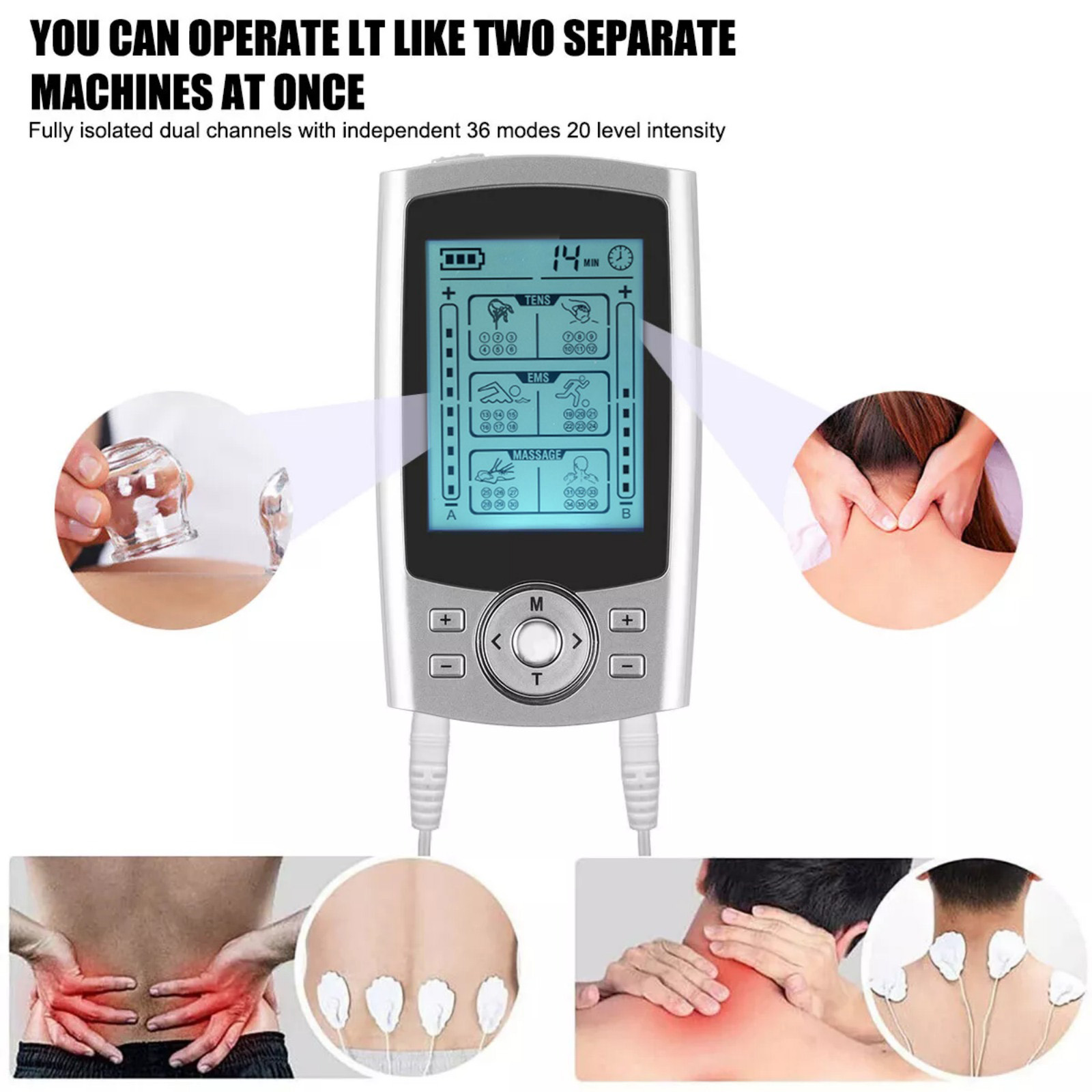 1. Independent Dual Channel Tens Machine: You Can Set Separate Modes And Intensities For Channel A And Channel B. Use For Back, Knee, Shoulder, Ankles, Wrist, Elbow And Make This The Most Powerful Tool For Your Body Relaxation. Enjoy With Your Family And Friends Anytime, Anywhere.