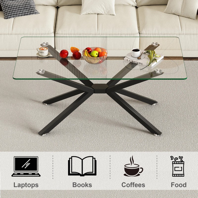 • 2.Modern Design:This glass coffee table features a tempered glass top and metal legs, bringing a modern feel to your indoor space.