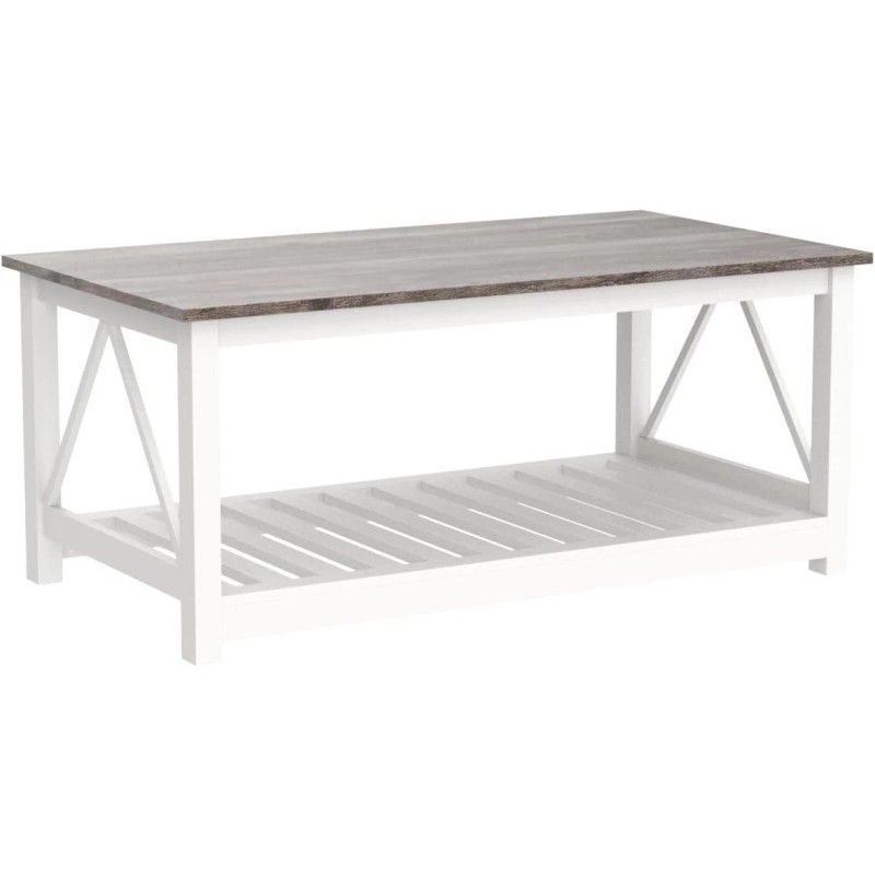 Assembly is straightforward with a clear manual and video guide included to help you put it together in about two hours. The combination of its versatile color scheme and functional design makes this coffee table a smart choice for anyone looking to add a touch of farmhouse charm to their living room décor.