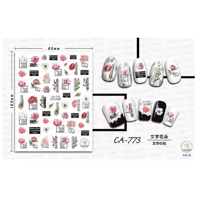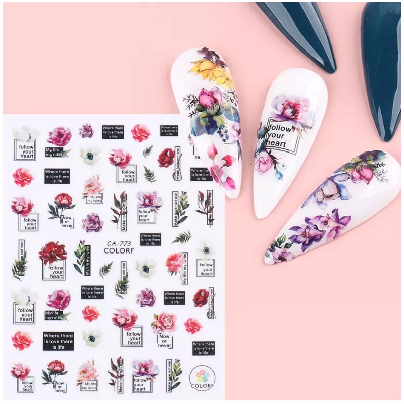 Unbranded 3D Nail Stickers Rose Flower Letter Follow Your Heart Self-Adhesive Slider NH7