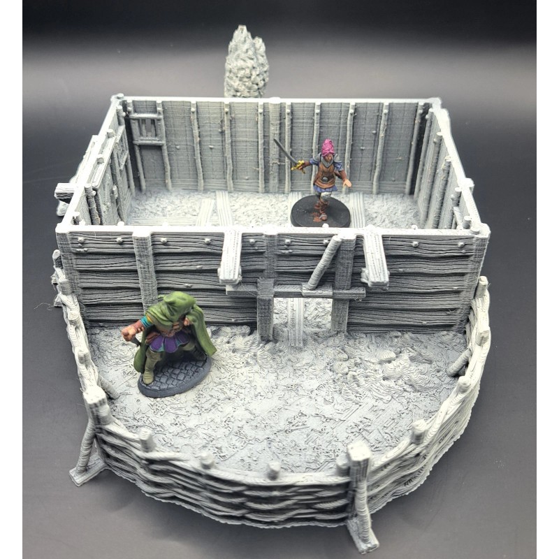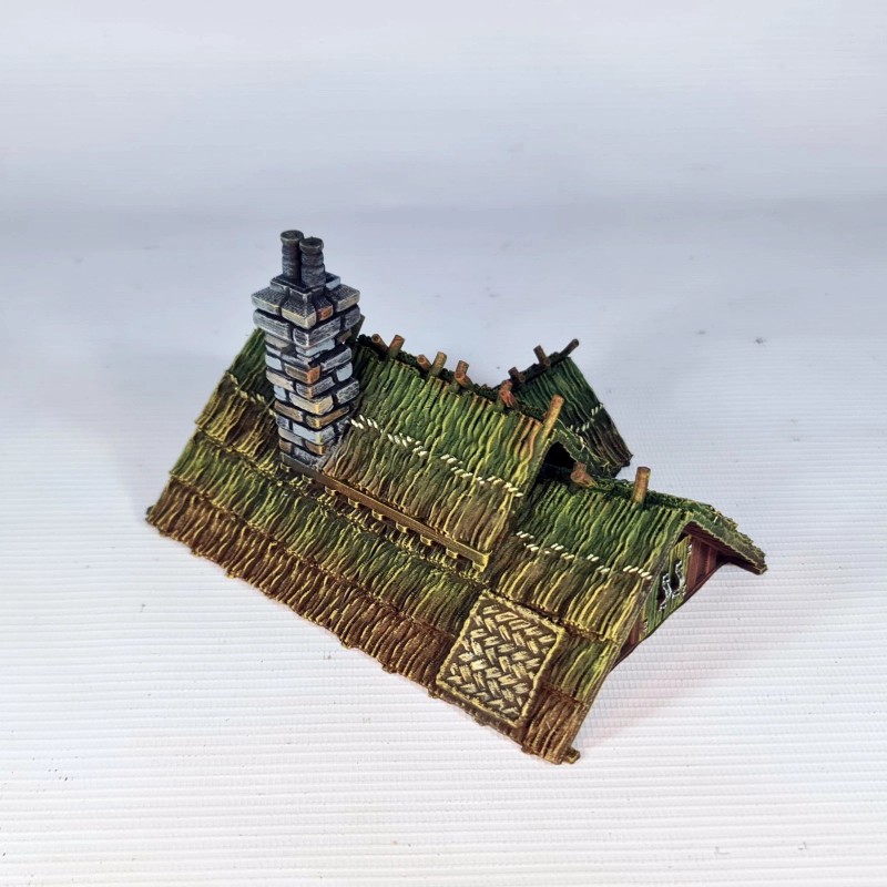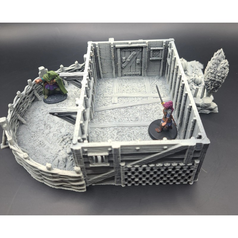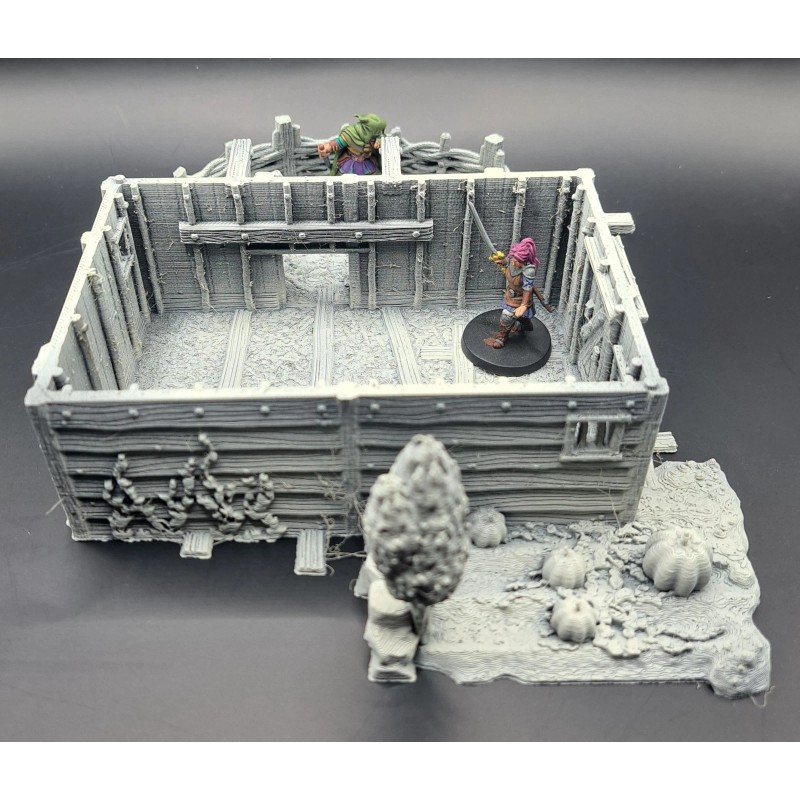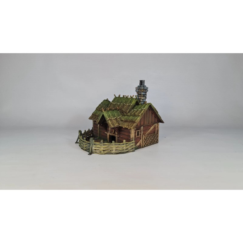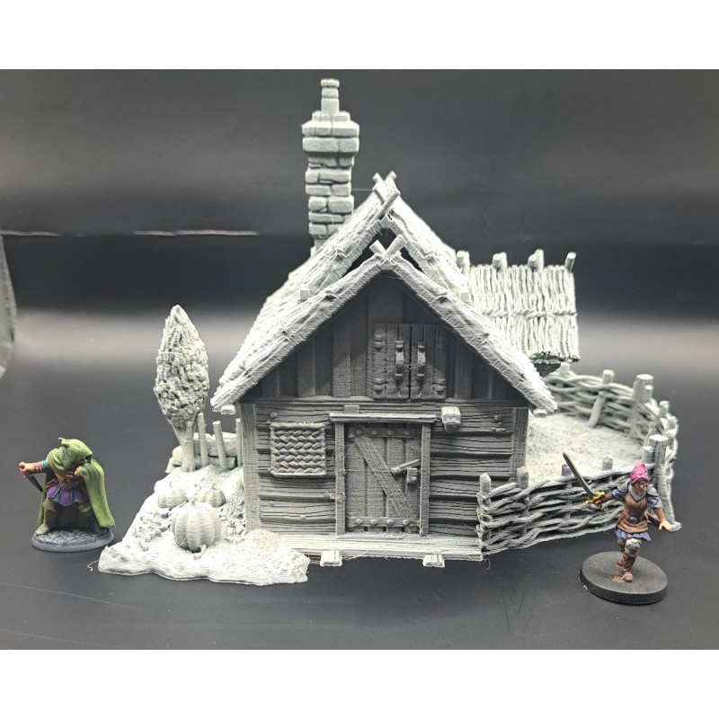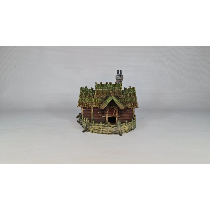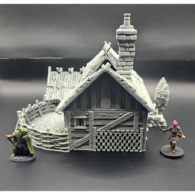 This 3d printed Farmstead is perfect for tabletop roleplaying games and scenery. It's a great addition to any miniature or war game collection. The intricate details and high-quality printing make it a must-have for any fantasy enthusiast. The house is ideal for creating a unique and exciting atmosphere for your games. This building is 1 story tall and comes in 2 pieces, and is suitable for 28mm and 32mm miniatures.