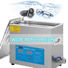 Ultrasonic CleaningThe microprocessor-controlled machine features high-efficiency ultrasonic waves to deeply clean the jewelry and other delicate items. | Stainless Steel BasketThe basket is to decrease collision between sharp items and tank, which ensures it for long-term use; Also can be used to drip dry items. | Tank LidThe stainless steel lid with handle reduces noise caused vibration of ultrasonic waves, and prevents water overflow while processing | Wide ApplicationsUltrasonic cleans is great for professional and personal or home use. Widely used for medical apparatus, jewelry, glasses, time pieces, commodities, stationary and other metal articles. |