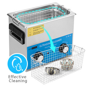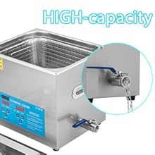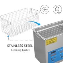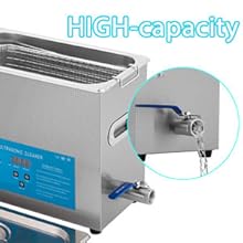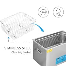 Ultrasonic CleaningThe microprocessor-controlled machine features high-efficiency ultrasonic waves to deeply clean the jewelry and other delicate items. | Stainless Steel BasketThe basket is to decrease collision between sharp items and tank, which ensures it for long-term use; Also can be used to drip dry items. | Drainage SystemThe drainage system with valve is designed at the bottom of the machine for easily draining residual water and keeping the area clean. | Wide ApplicationsUltrasonic cleans is great for professional and personal or home use. Widely used for medical apparatus, jewelry, glasses, time pieces, commodities, stationary and other metal articles. |