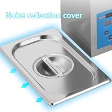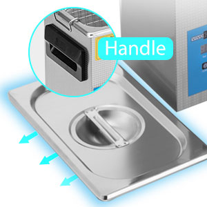 Ultrasonic CleaningThe microprocessor-controlled machine features high-efficiency ultrasonic waves to deeply clean the jewelry and other delicate items. | Stainless Steel BasketThe basket is to decrease collision between sharp items and tank, which ensures it for long-term use; also can be used to drip dry items. | Tank LidThe stainless steel lid with handle reduces noise caused vibration of ultrasonic waves, and prevents water overflow while processing |