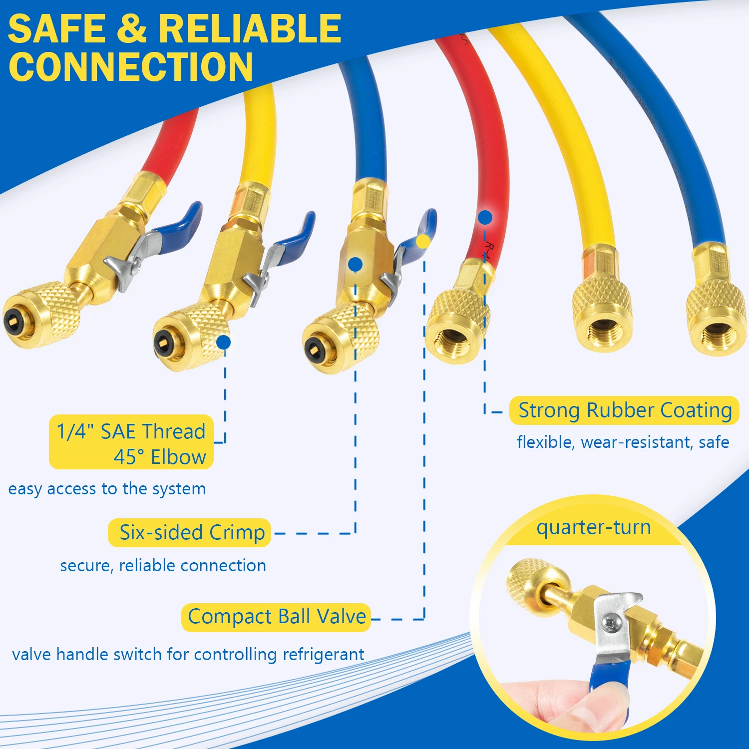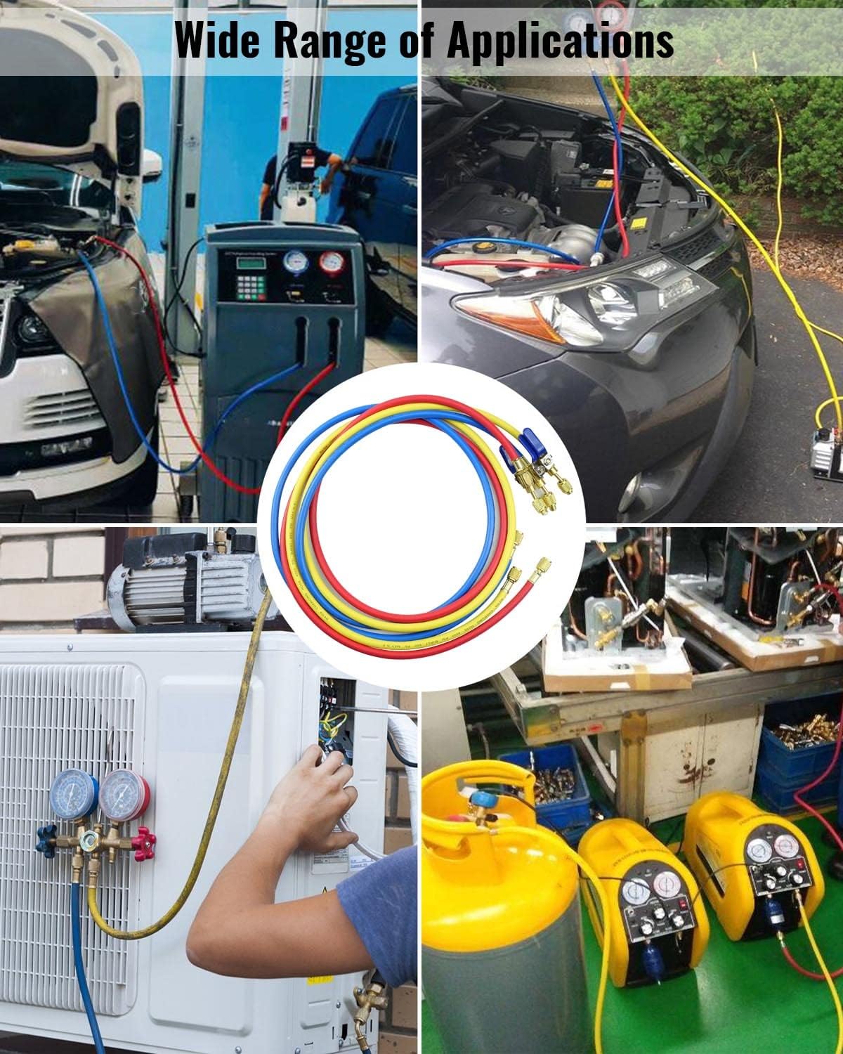 Fit SAE refrigerant permutation,HVAC,car air condition maintenance,coolant or adding freon. For Use With Refrigerant Manifold Gauge Sets,recommended for R-410A,R404 ,R134A ,R502, R12 ,R22.