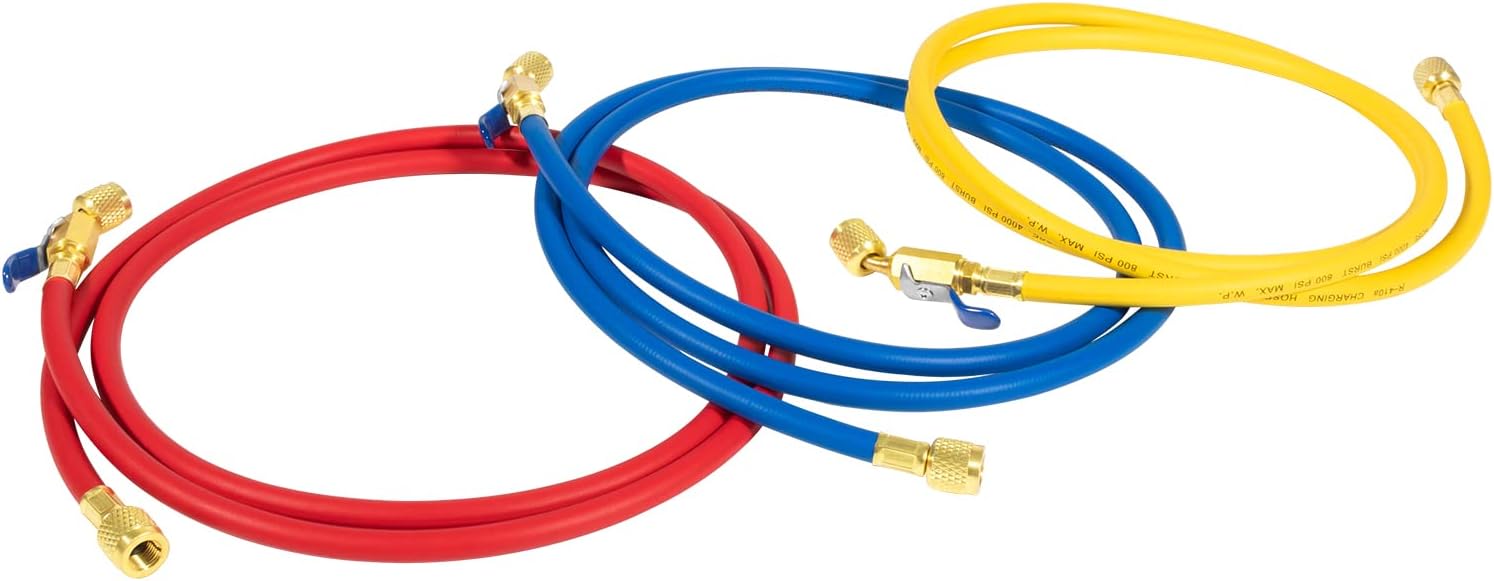 Unbranded 3PC-29986 Plus II 72" Hose 1/4" Compact Ball Valve End Refrigerant Charging Hose