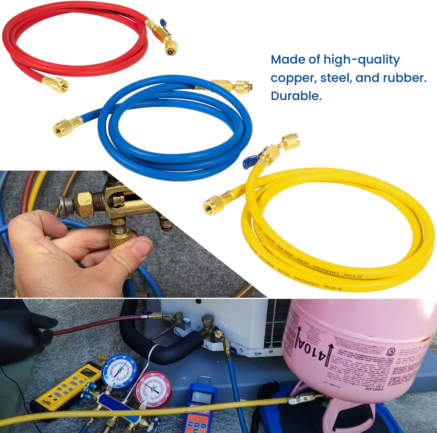 - For Use With Refrigerant Manifold Gauge Sets,recommended for R-410A,R404 ,R134A ,R502, R12 ,R22.