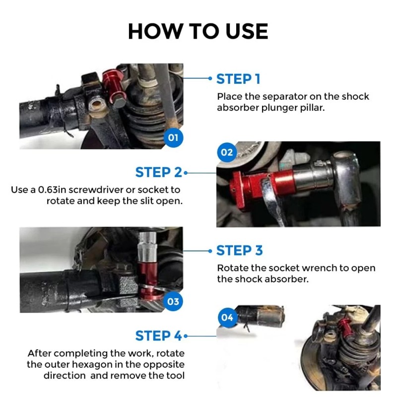 Tip: Before you buy, make sure this prop extension tool is the right size for your car. Do not use power or air tools to drive these strut expander tools to prevent damage caused by improper operation.