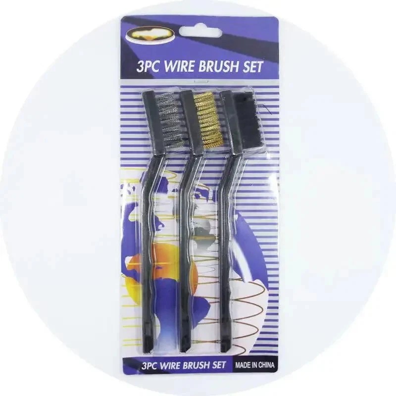 The 3pcs Wire Brush Set is the ultimate cleaning tool for various household and professional tasks, including rust removal, surface cleaning, and preparation. Each set includes three brushes with stainless steel, nylon, and brass bristles, catering to different cleaning needs. Available in 1 set, 3 sets, or 12 sets to suit your requirements.