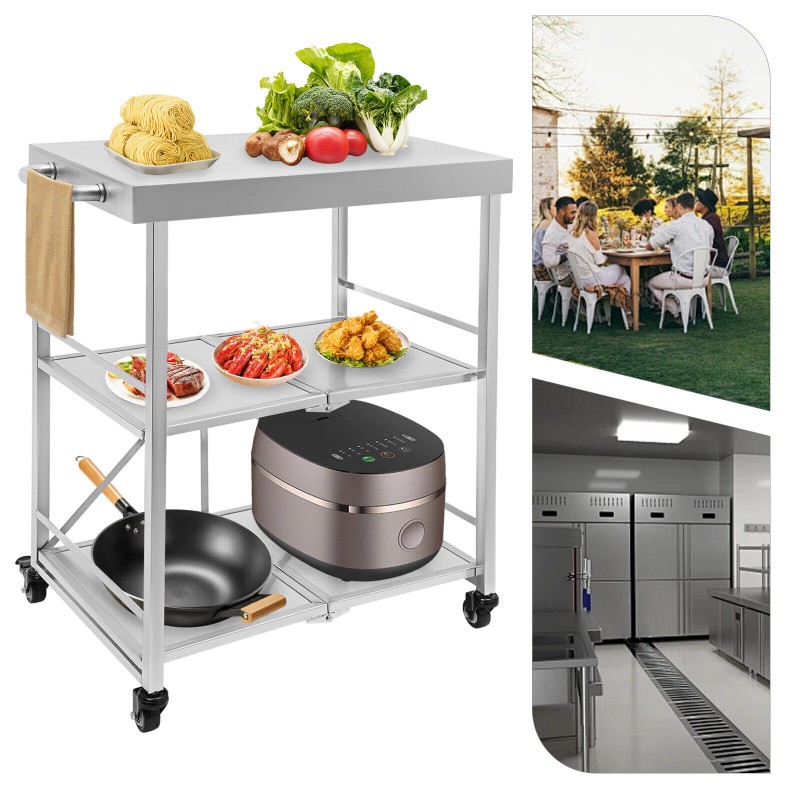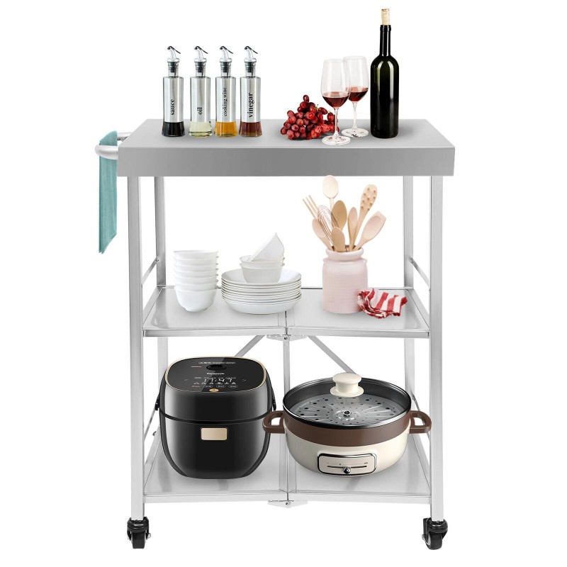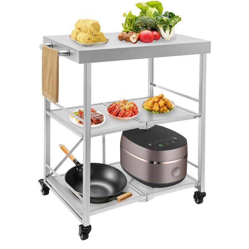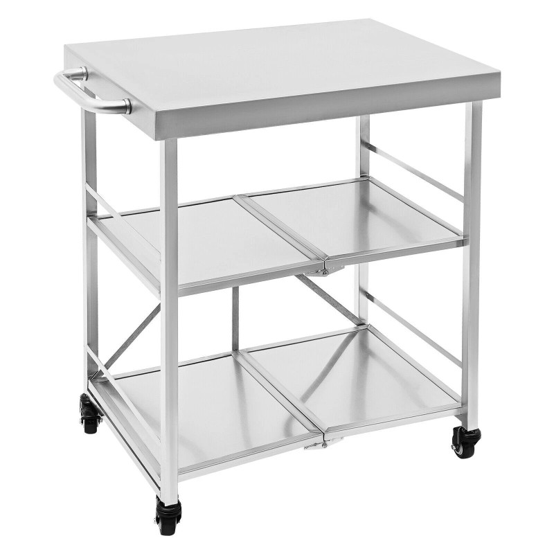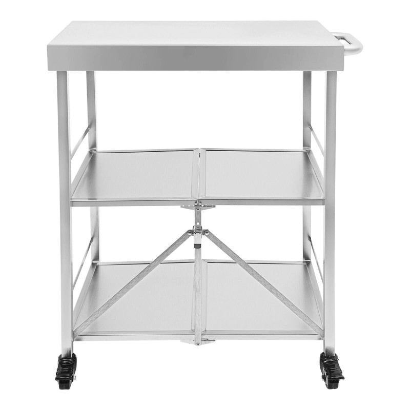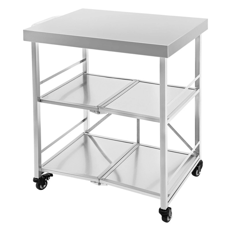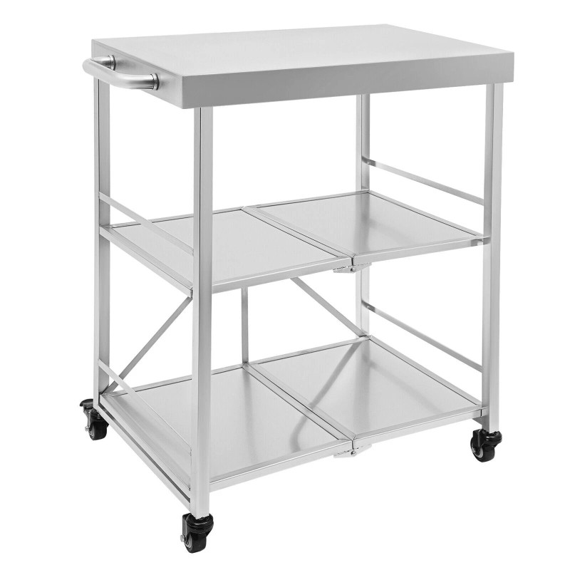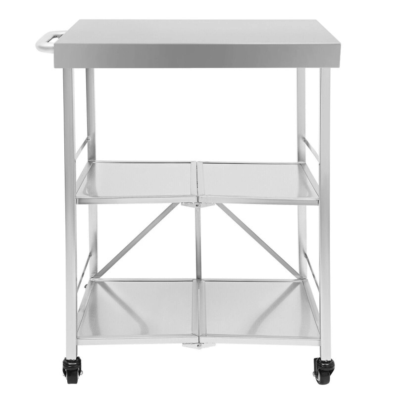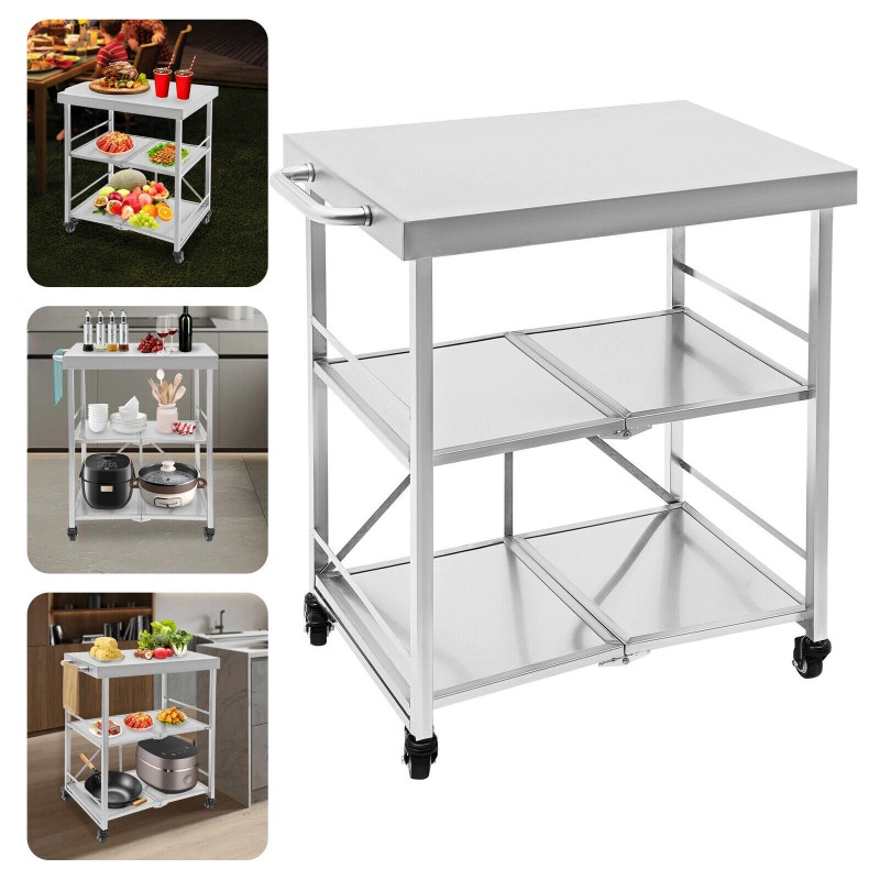 Unbranded 3Tier Stainless Steel Utility Cart Rolling Kitchen Storage Trolley Folding Shelf