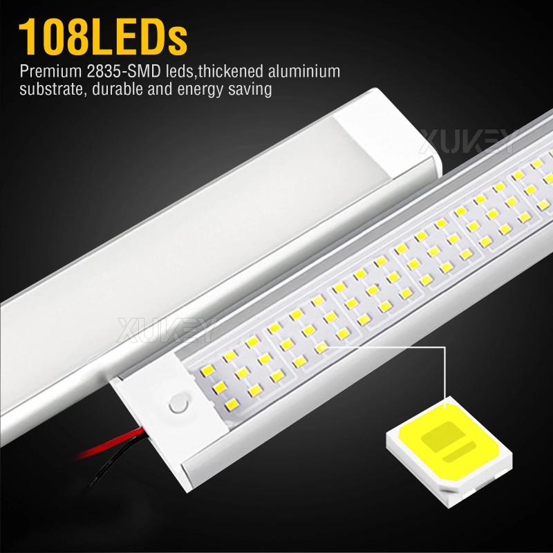 PACK OF 4 * Upgrade Acrylic/PMMA Lamp Cover - Pure White Light Emitting - 108pcs SMD LED Chipset Interior Light Bar, Universal widely used lighting Strip, 12V-80V DC Compatible, with ON/OFF Switch