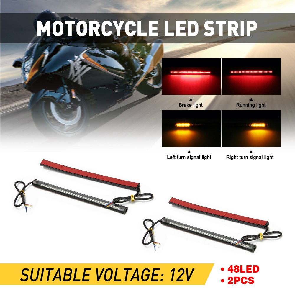 Unbranded 4 Flexible Motorcycle LED Strip 48LED Tail Brake Stop Turn Signal Running Lights