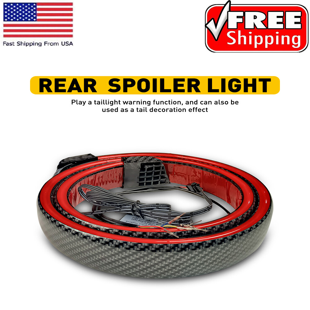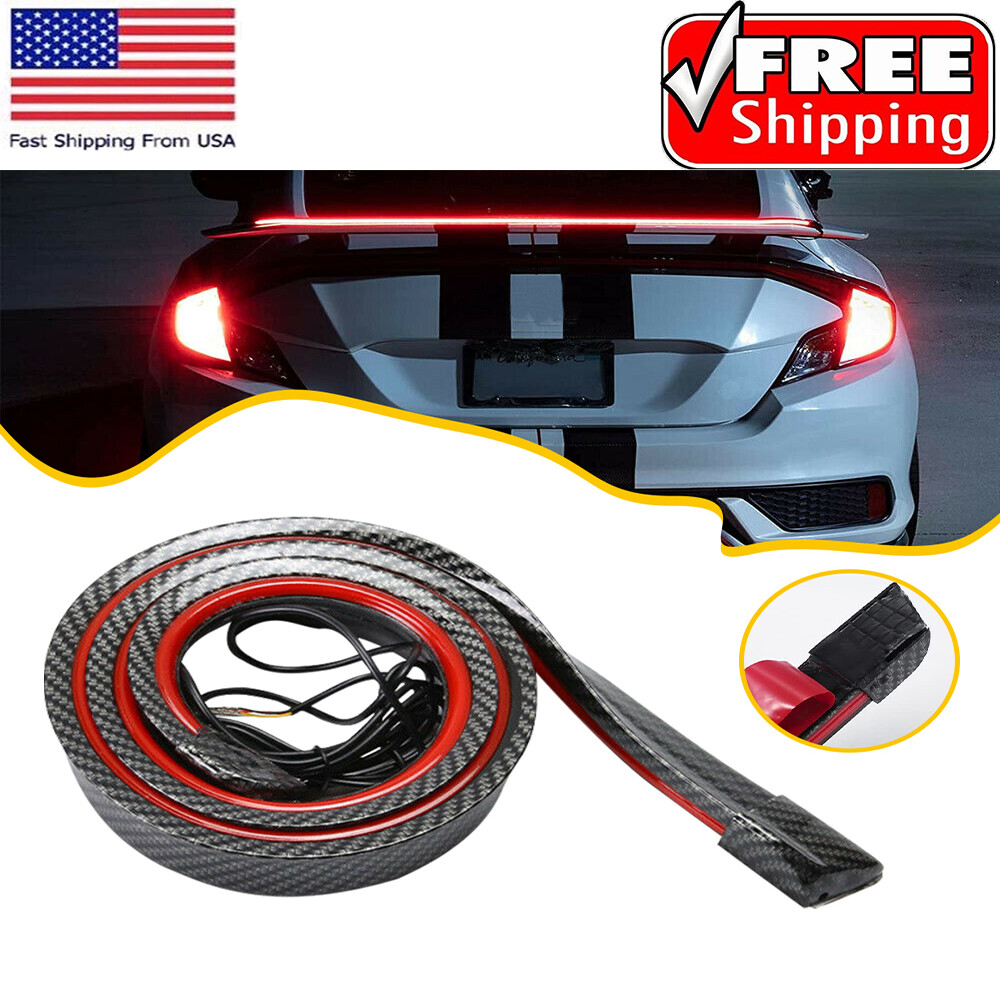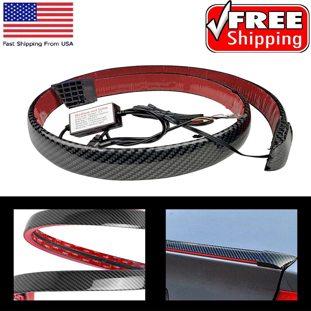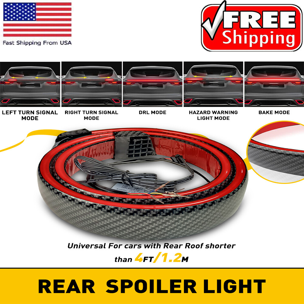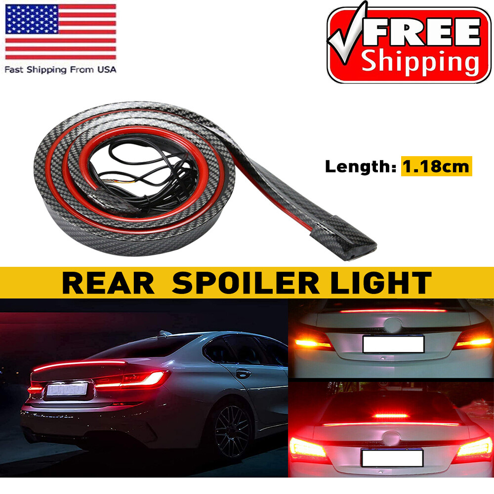 4 FT 1.2M Carbon Fiber LED Car Tail Light Brake Bar Strip Rear Spoiler Lip Trim