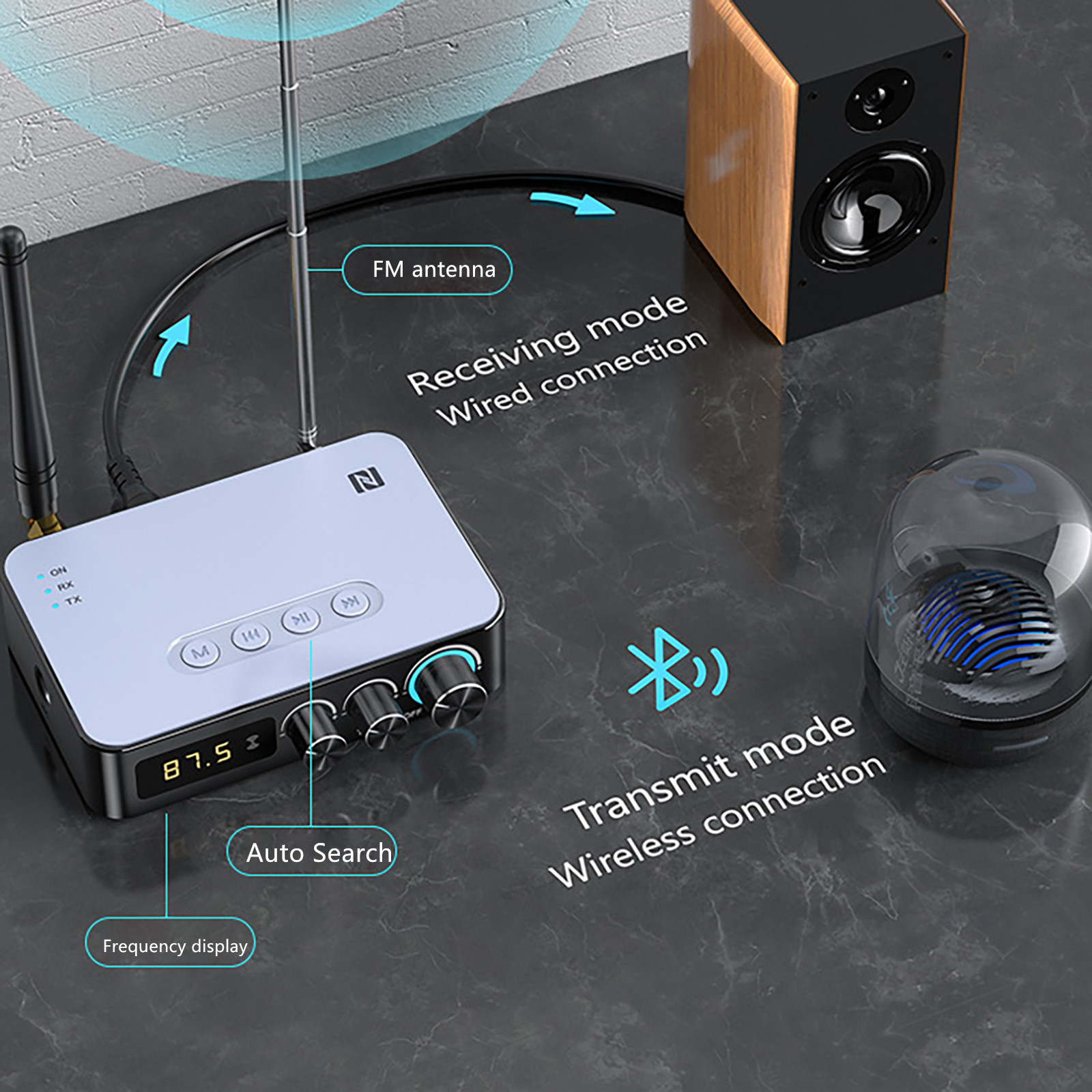 Dual Transmit Dual Receive: 4-in-1 Bluetooth Adapter support RX, TX and FM, support NFC wireless connection. As an audio Bluetooth transmitter, it stream audio from TV, PC, laptop to two Bluetooth headphones. Or use it as a receiver to stream your cellphone audio to home stereo as well as any device with a 3.5mm audio jack. Enjoy the wireless tech life