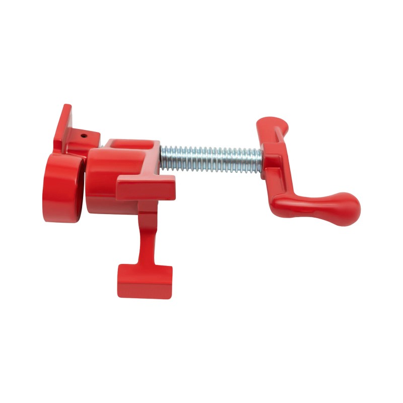 Specification Material: Cast Iron Process: Painting, Plastic Spraying Color: Red Mount Type: Countertop Assembly Required: Yes Number of Pieces: 4 Applicable Pipe Specifications: 3/4" Thread Diameter: 1.6cm/0.63in Handle Length: 11cm/4.33in Total Length: 19cm/7.48in Pipe Clamp Base Size: 8.4*4.5cm/3.31*1.77in Pipe Clamp Height: 6cm/2.36in Pipe Clamp Hole Diameter: 2.8cm/1.1in Package Size: 26*21*14cm/10.24*8.27*5.51 in Gross Weight: 5.31kg/11.71lbs Package Included 4*Wood Gluing Pipe Clamps