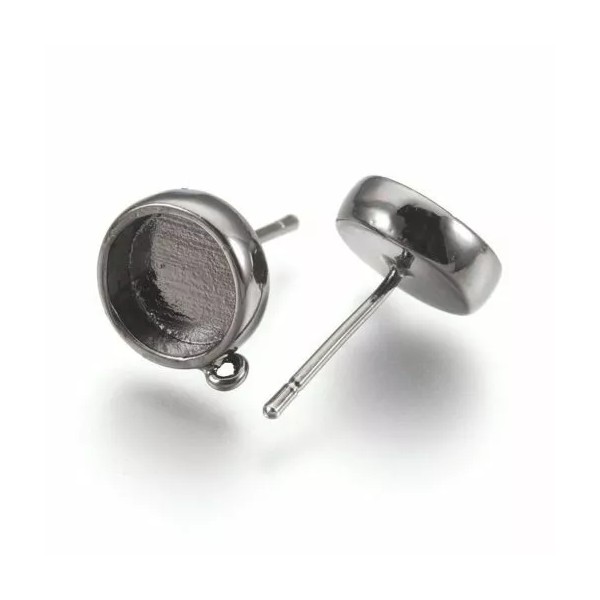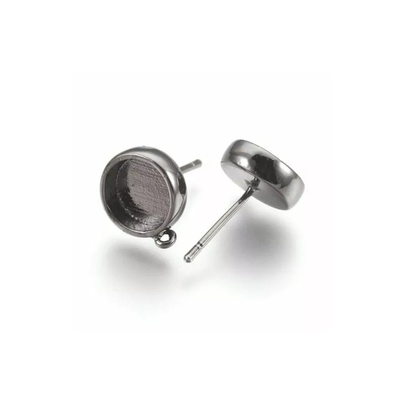 Brand NEW Gunmetal Earring Posts Studs Settings Bezels with Loop (Blanks) – Stoppers Included – No bump on the glue pad