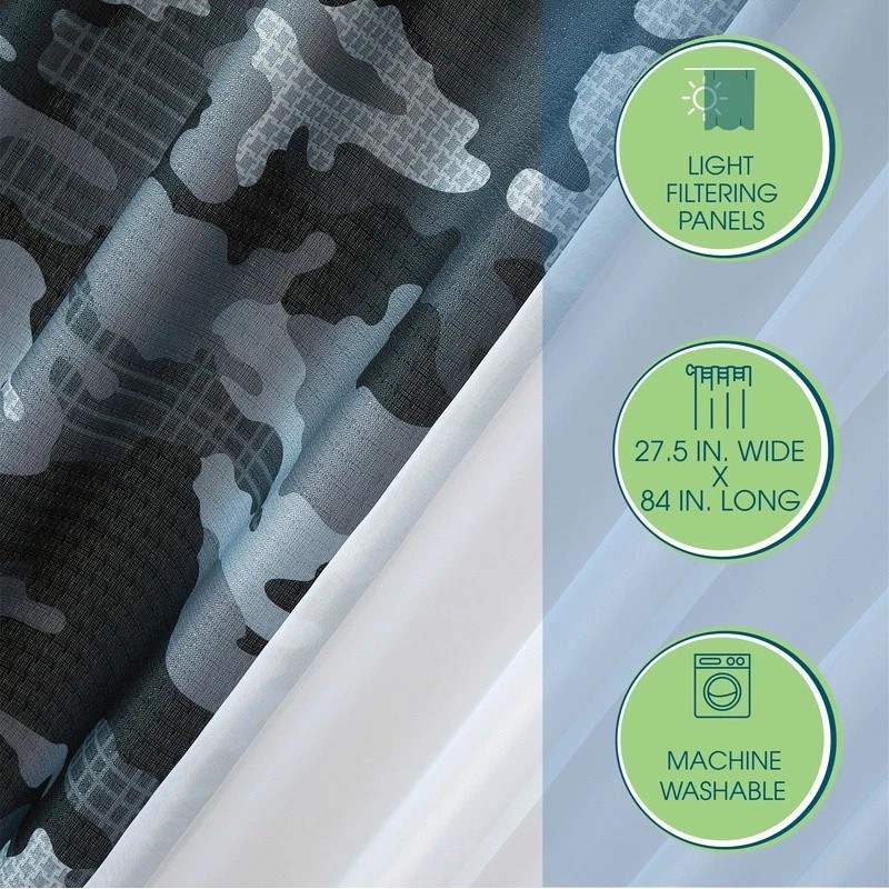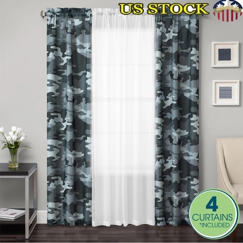 Unbranded 4 Piece Curtain Sheer Set Rod Pocket Light Filtering Camouflage Indoor Panels US