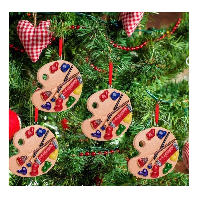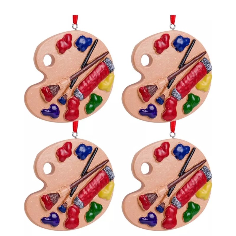 Unbranded 4 Pieces Christmas Painters Palette Ornament, Resin