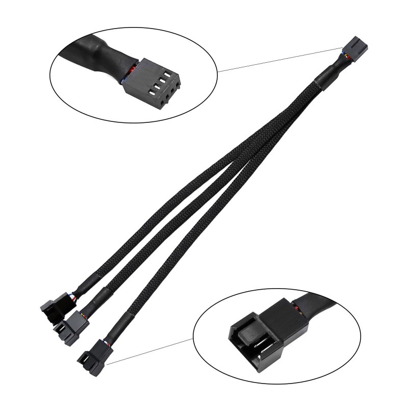 The Fan Splitter Connects 3 Computer Case Fans to a Single Motherboard Fan Header, Compatible With 4 Pin and 3 Pin PMW Fan Connector